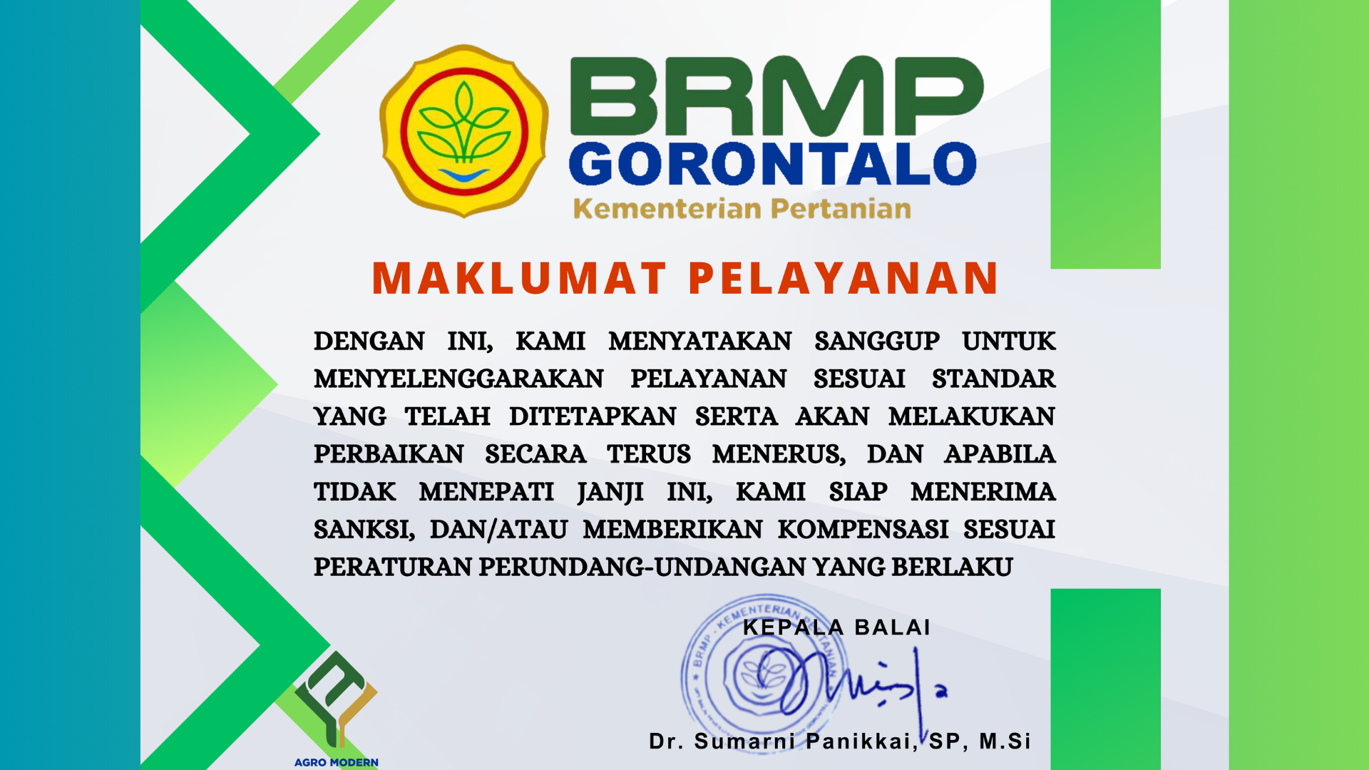 BRMP Gorontalo menyediakan beragam layanan untuk memastikan produk dan teknologi pertanian memenuhi standar mutu, keamanan, dan keberlanjutan. Seluruh layanan dilaksanakan sesuai Standar Pelayanan Publik (SPP), sehingga terjamin transparan, cepat, dan terpercaya.